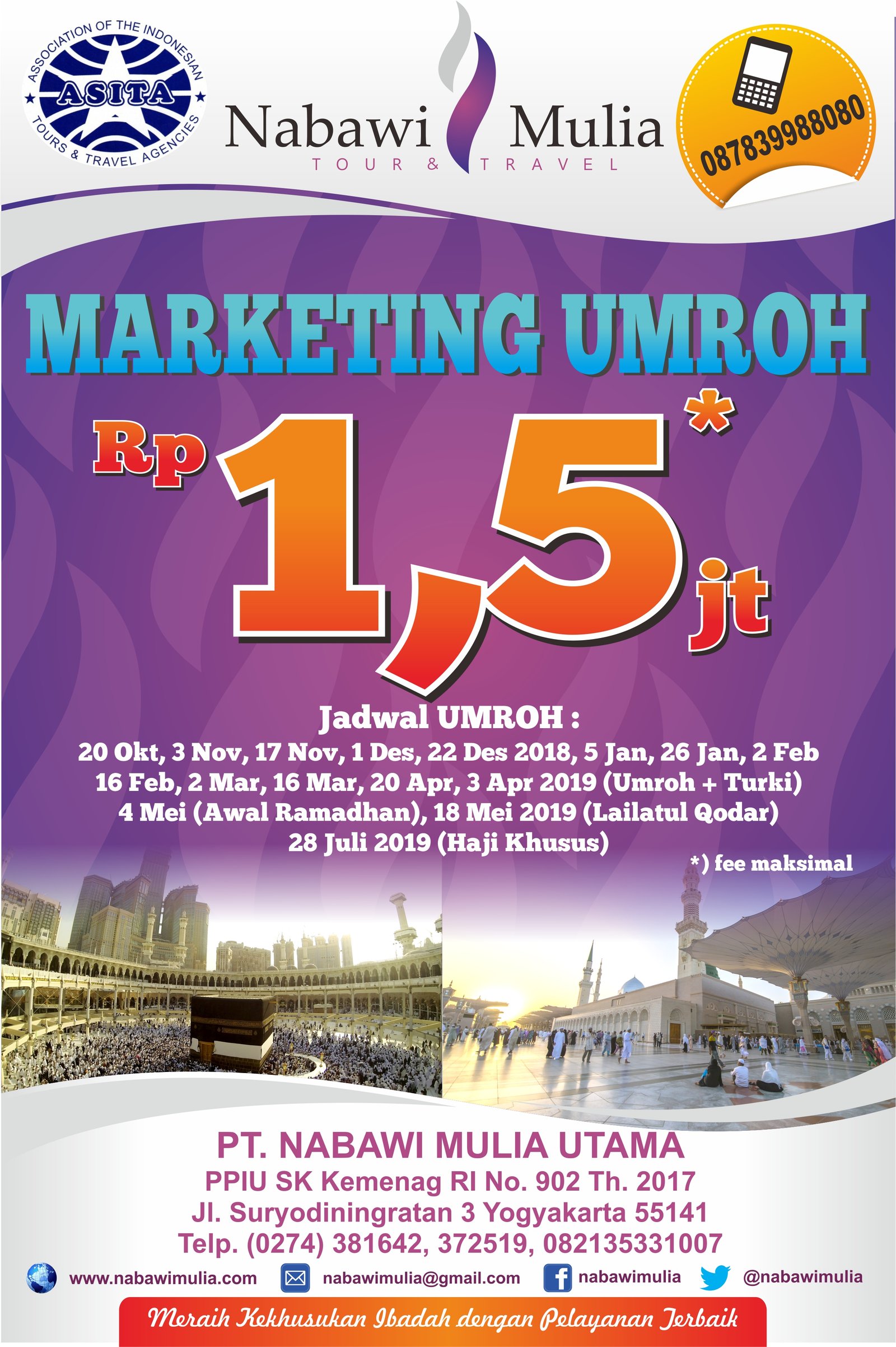 Sebagai salah satu travel umroh resmi di Daerah Istimewa Yogyakarta, kami membuka peluang kerjasama keagenan.